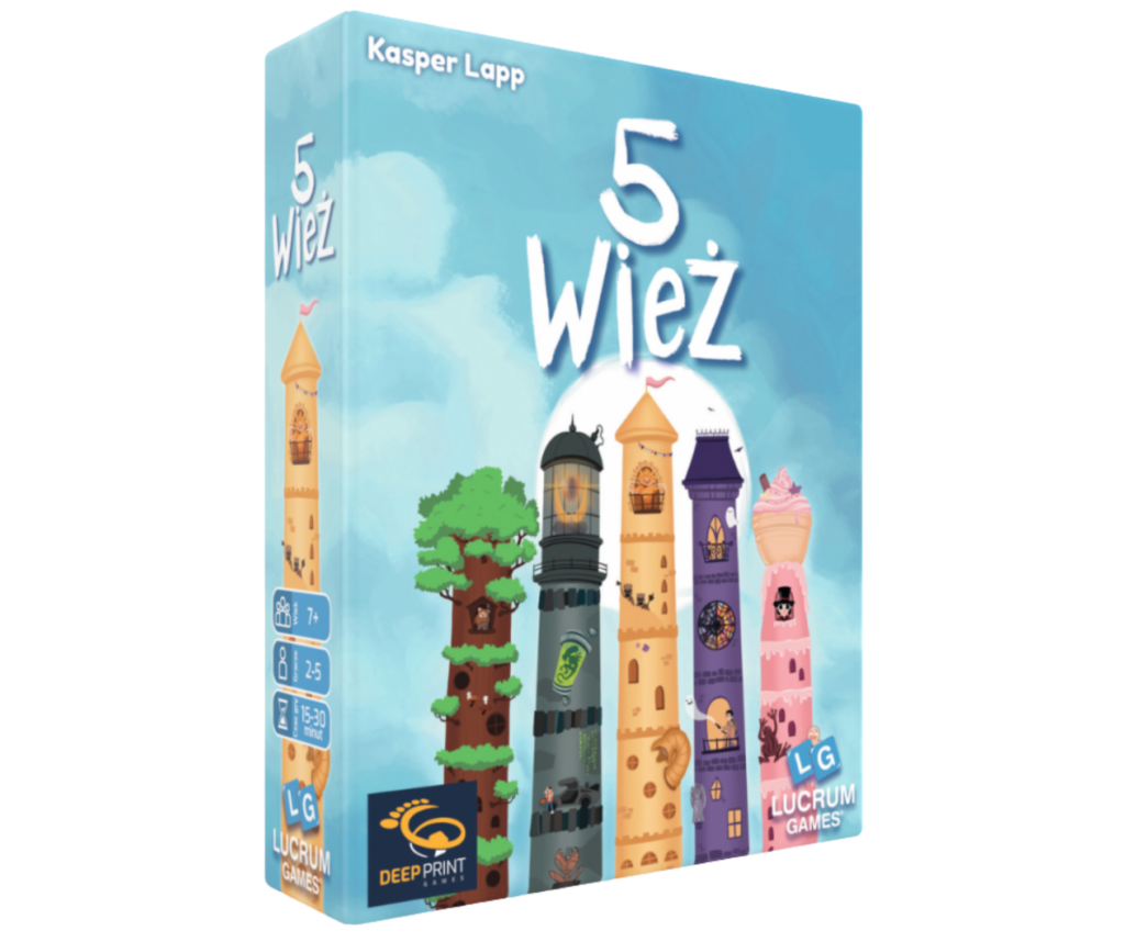 5 Wież to szybka gra karciana, w której wcielasz się w rolę architekta rywalizującego o budowę najwyższych wież. Wykorzystując mechanikę licytacji i zarządzania kartami, musisz zdobywać komponenty do budowy pięciu różnych typów konstrukcji. Każda rozgrywka trwa zaledwie 15 minut, co czyni ją idealną na szybkie, emocjonujące partie.