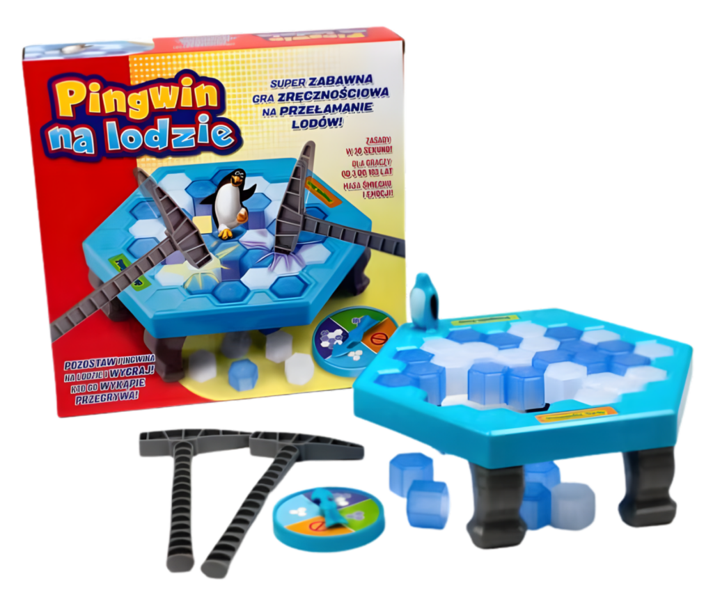 „Pingwin na lodzie” to ewolucja klasycznej gry, która uczy planowania i przewidywania, a jednocześnie jest źródłem niekończącej się radości. [13] Doskonale ćwiczy koordynację wzrokowo-ruchową i koncentrację u najmłodszych. Proste zasady, szybki montaż i dynamiczna rozgrywka sprawiają, że to świetny pomysł na prezent i obowiązkowy element każdej rodzinnej imprezy.