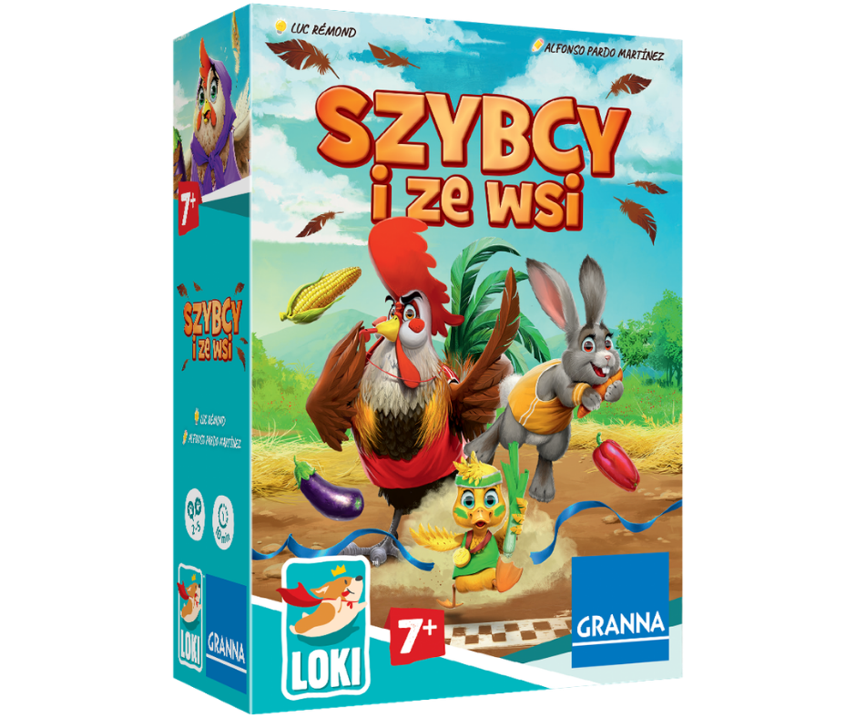 Szybcy i ze wsi to dynamiczna gra planszowa dla 2-5 graczy, w której wszystkie zwierzęta z gospodarstwa biorą udział w corocznych zawodach sztafetowych. Gra wymaga przewidywania ruchów przeciwników i strategicznego planowania. Idealna na szybką, emocjonującą rozgrywkę trwającą około 10 minut.