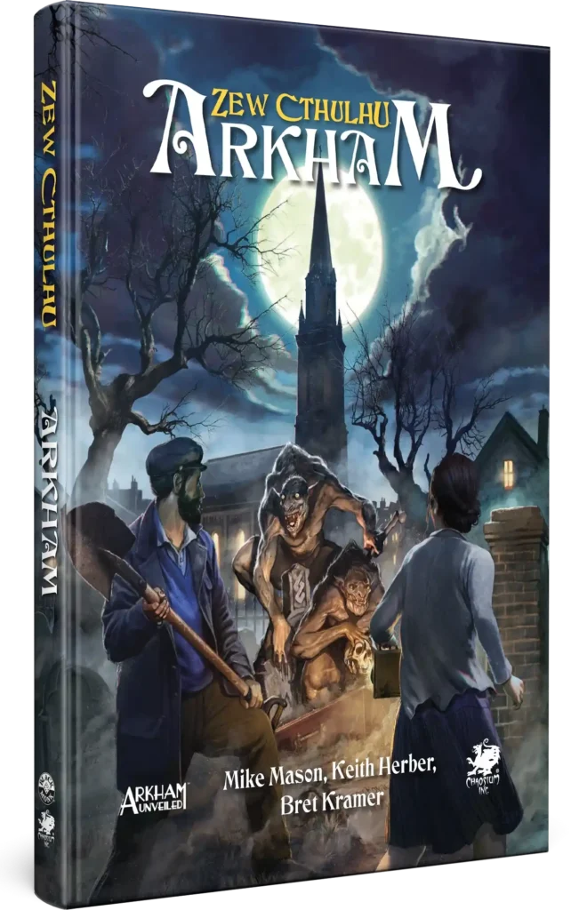 Dołącz do naszej podróży po tym nawiedzanym przez liczne legendy mieście na brzegach rzeki Miskatonic w hrabstwie Essex w stanie Massachusetts. W tej publikacji znajdziesz opisy mieszkańców miasta, różnych działających w nim przedsiębiorstw oraz całej społeczności – począwszy od urzędów publicznych, a skończywszy na mrocznym półświatku. W Arkham mieszkają różnorodne istoty, mające swoje niedole i radości, swoje własne cele oraz… tajemnice.