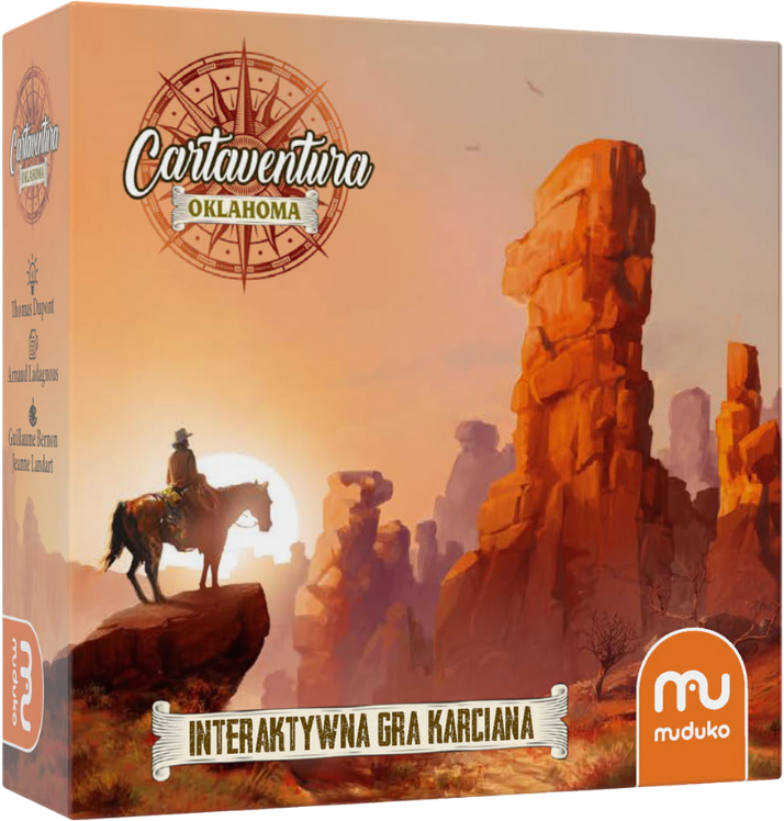 „Cartaventura: Oklahoma” to niezwykła, interaktywna gra karciana, która przeniesie Cię na Dziki Zachód w roku 1854. Wciel się w postać historycznego bohatera, Bassa Reevesa, i spróbuj uciec z niewoli, by odnaleźć wolność. W tej grze nie musisz uczyć się skomplikowanych zasad – po prostu siadasz i grasz! Wspólnie z innymi graczami decydujcie o losach bohatera, budujcie mapę z kart i odkrywajcie różne zakończenia tej poruszającej historii. Piękne, akwarelowe ilustracje i kompaktowe pudełko czynią z niej idealny prezent dla miłośników przygód.