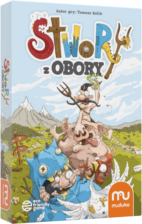 „Stwory z Obory” to ociekająca czarnym humorem gra karciana, w której wcielasz się w wieśniaka marzącego o karierze pogromcy potworów. Przebieraj się za bestie, wystawiaj fałszywe zlecenia i walcz o sławę (lub chociaż o to, by sąsiad miał gorzej). To w 100% polska produkcja, pełna nawiązań do popkultury, sarkazmu i negatywnej interakcji. Idealna gra imprezowa, jeśli nie boisz się stracić kilku znajomych!