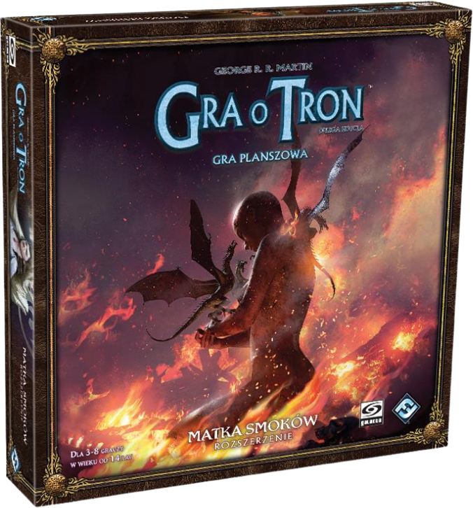 Matka Smoków to dodatek do gry planszowej Gra o Tron, wprowadzający ród Targaryenów wraz z trzema smokami oraz nowy fragment mapy przedstawiający Wolne Miasta Essos. Rozszerzenie dodaje także ród Arrynów, nowe karty postaci oraz możliwość gry nawet w 8 osób. To obowiązkowy dodatek dla wszystkich fanów Westeros i epickich starć o Żelazny Tron. Uwaga: wymaga podstawowej gry Gra o Tron.