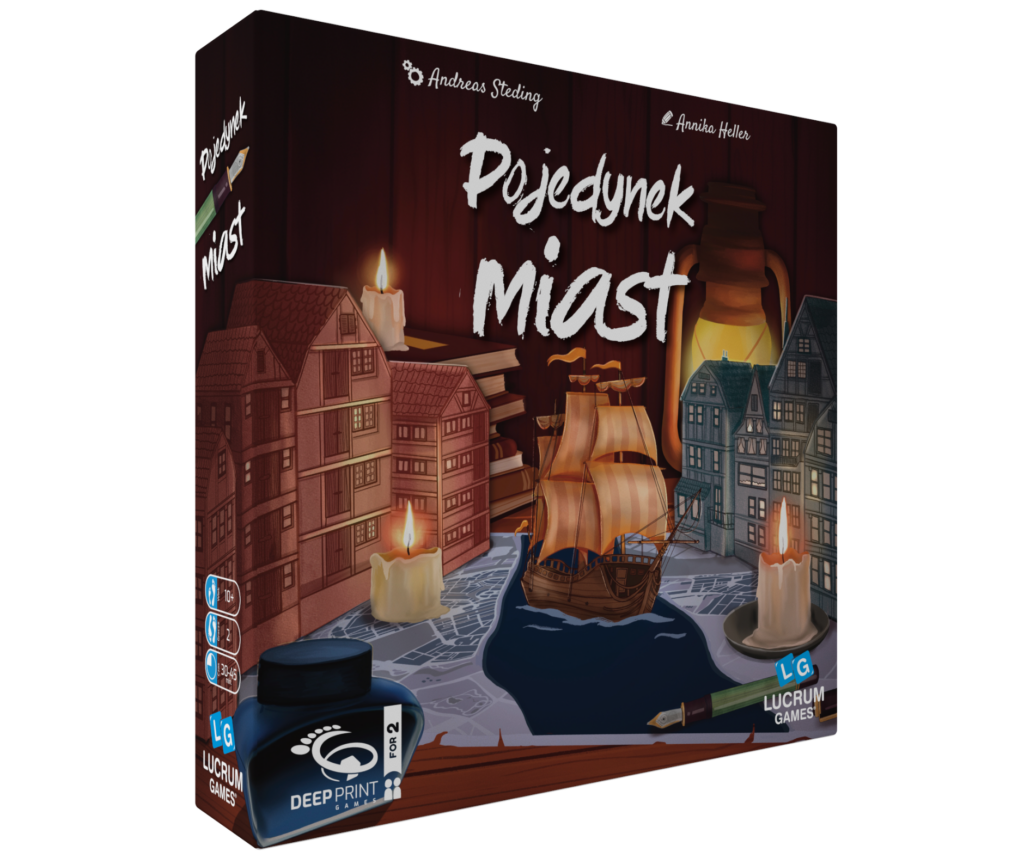 Pojedynek Miast to polska edycja uznanej gry Rival Cities od Deep Print Games, wydana przez Lucrum Games. Gra oferuje gleboka strategie w kompaktowym formacie dla dwoch osob z mechanika rondla i mozliwoscia natychmiastowego zwyciestwa. Wymiary: 20 x 10 x 4,5 cm.