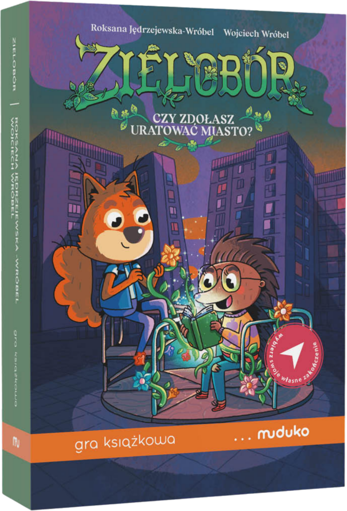 „Zielobór” to interaktywna powieść paragrafowa, w której dziecko wciela się w postać jeża Jagody. Zadaniem czytelnika jest uratowanie miasta przed smogiem poprzez rozwiązywanie zagadek i podejmowanie właściwych decyzji. Książka uczy ekologii przez zabawę, rozwija wyobraźnię i logiczne myślenie. Autorzy: Roksana Jędrzejewska-Wróbel i Wojciech Wróbel. Idealna lektura dla małych przyrodników.